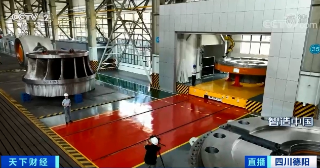 记者来到四川德阳东方电气的一座生产车间,在这个车间,不管是地面遍布的大型装备,还是空中纵横的天车,都让人感受到这里超强的制造能力,这座厂房长400米,高33米,在建成时被称为中华第一跨。