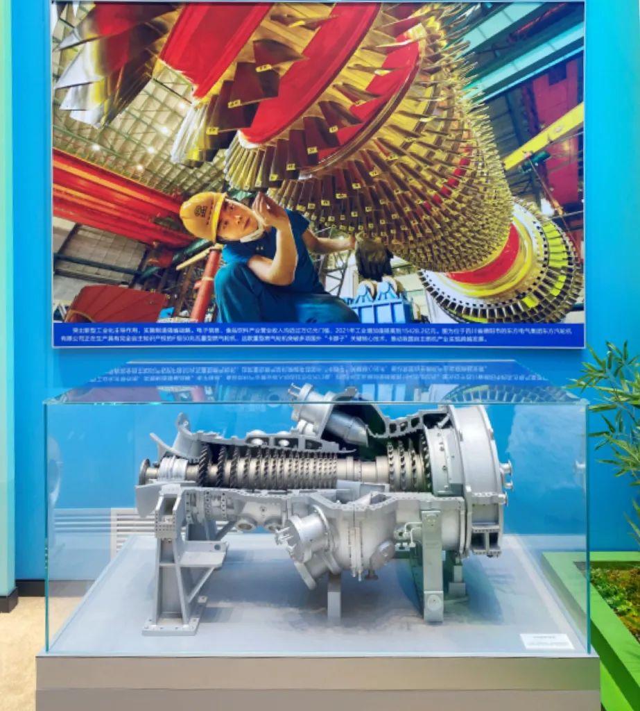 东方电气集团自主研制的国内首台50兆瓦重型燃机部件图片和实物模型在“奋进新时代”主题成就展展出