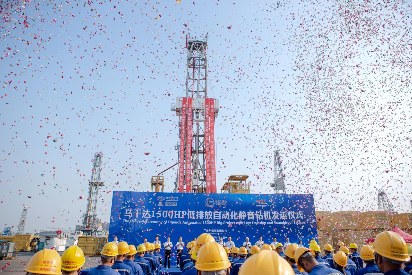 “挺进乌干达!”8月22日,东方宏华为钻机启程举办了盛大的发运仪式。宏华人为之自豪,为了这一天,宏华团队已经鏖战了三年。