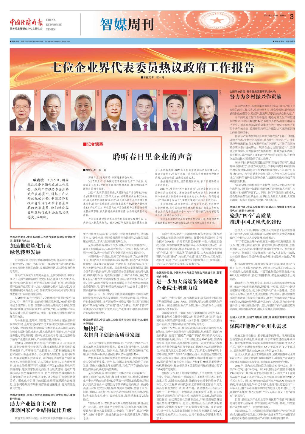 七位企业界代表委员热议政府工作报告