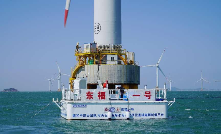 6月2日,经中国工程院专家组现场考察后确认,由深圳大学/四川大学谢和平院士团队与中国东方电气集团有限公司联合开展的全球首次海上风电无淡化海水原位直接电解制氢技术海上中试在福建兴化湾海上风电场获得成功。