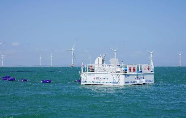 据介绍,此次海上中试于5月中下旬在福建兴化湾海上风电场开展,使用的是由东方电气集团与中国工程院谢和平院士团队联合研制的全球首套与可再生能源相结合的漂浮式海上制氢平台“东福一号”。该平台集成原位制氢、智慧能源转换管理、安全检测控制、装卸升降等系统于一体,在经受了8级大风、1米高海浪、暴雨等海洋环境的考验后,连续稳定运行超过240小时,验证了由中国科学家原创的海水无淡化原位直接电解制氢原理与技术在真实海洋环境下的可行性和实用性。