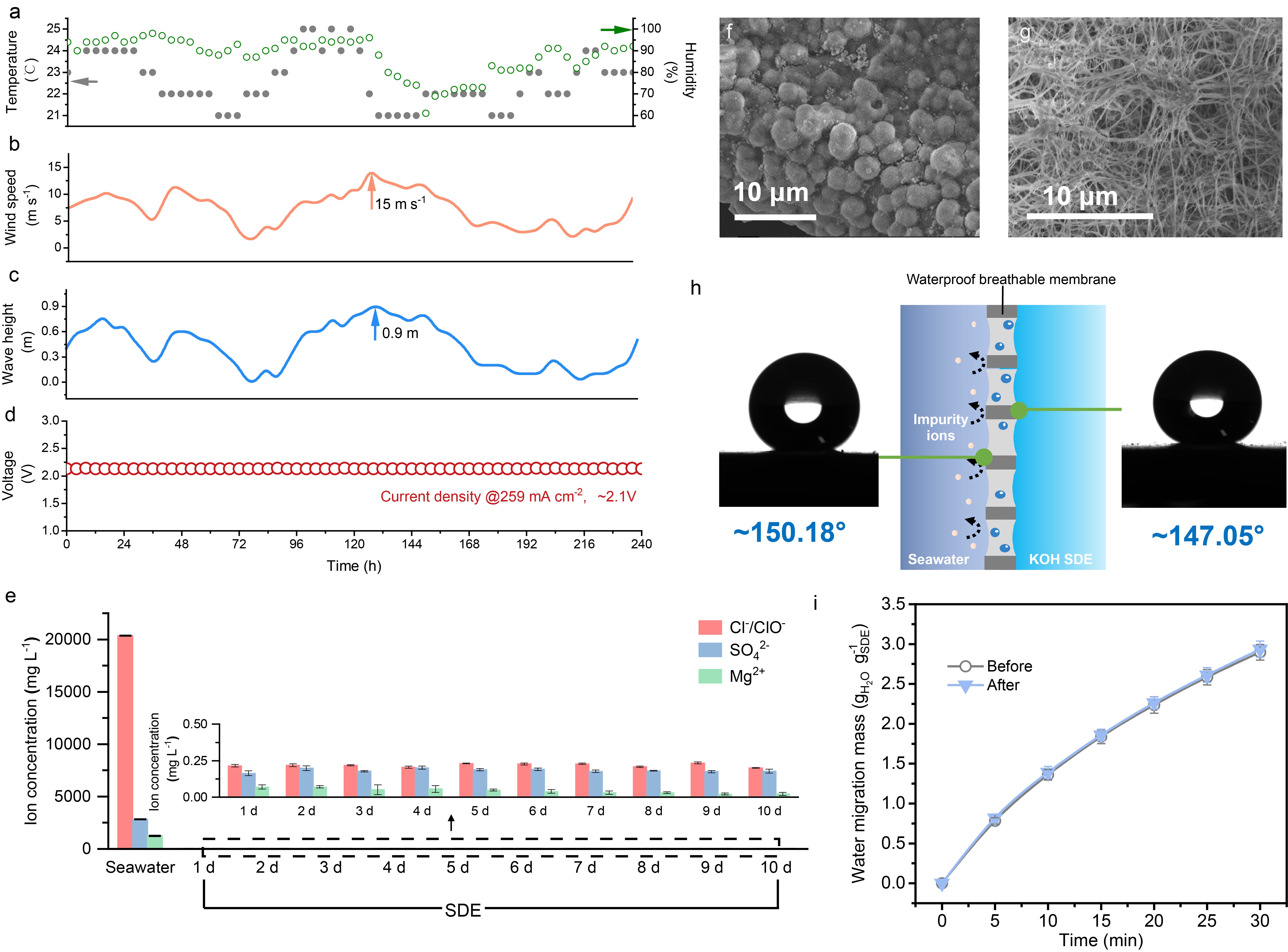 该团队基于2022年11月在《自然》发表的“海水直接电解制氢全新原理”,构建出真实大海不可控海洋波动环境下海水直接制氢全新路径与技术,并系统研究不同海水组分(广东省深圳湾、福建省兴化湾)浓度变化所导致界面蒸气压差差异,阐明浓度动态变化下相变迁移过程的自调控自适应机制。