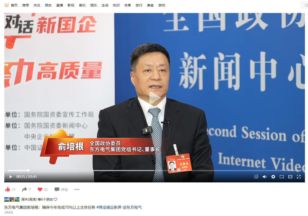 [国资小新]东方电气集团俞培根:确保今年完成70%以上主体任务 #两会国企新声