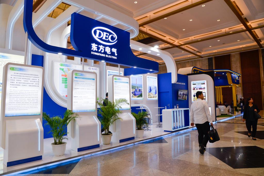 11月21日在印度尼西亚雅加达会议中心拍摄的印度尼西亚国际电力展览会东方电气展台。新华社记者 徐钦 摄