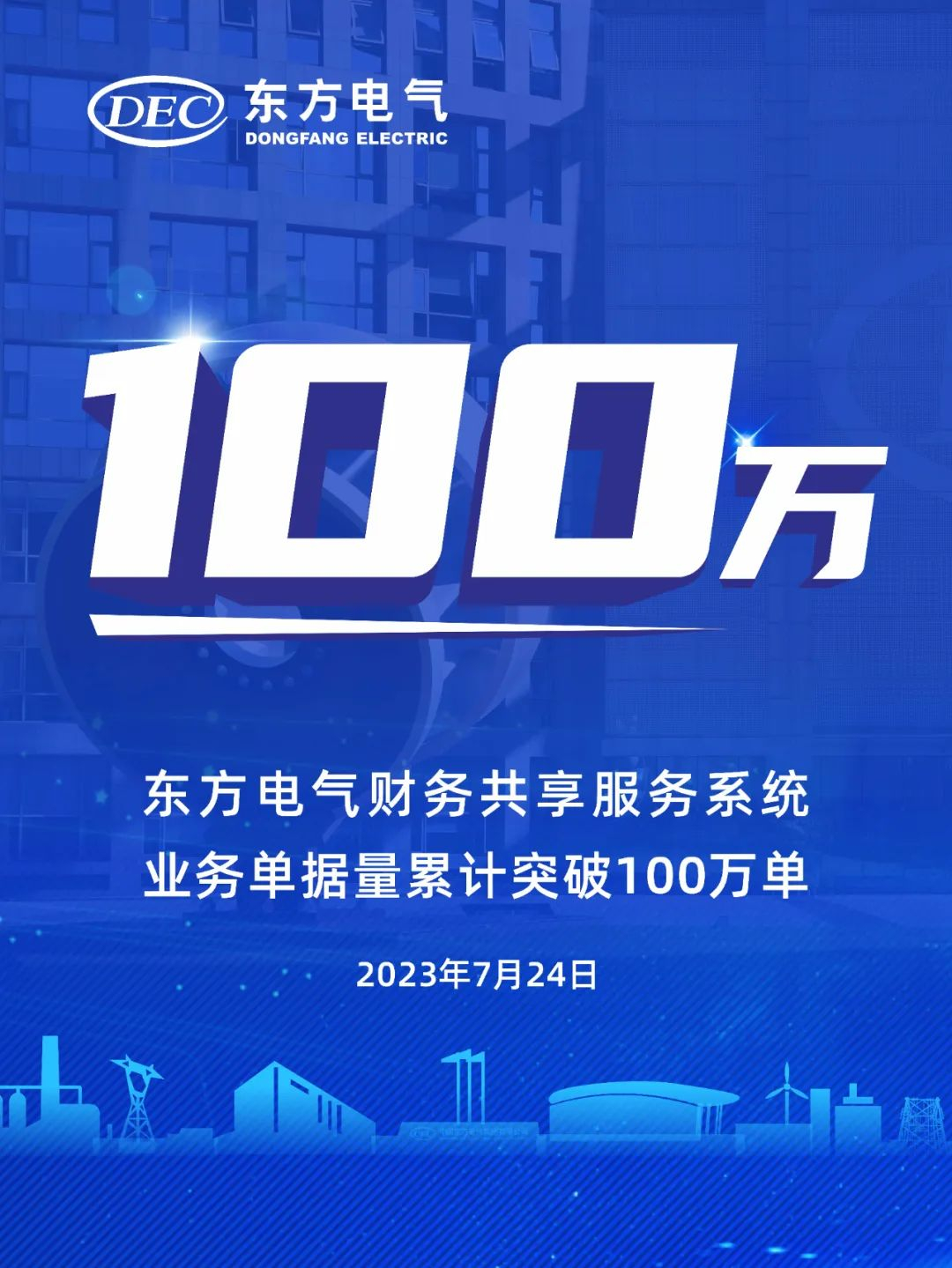 7月24日,东方电气财务共享服务系统业务单据量累计突破100万单大关。