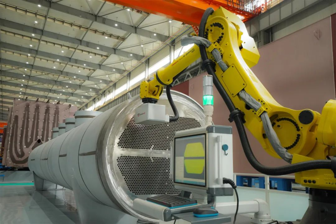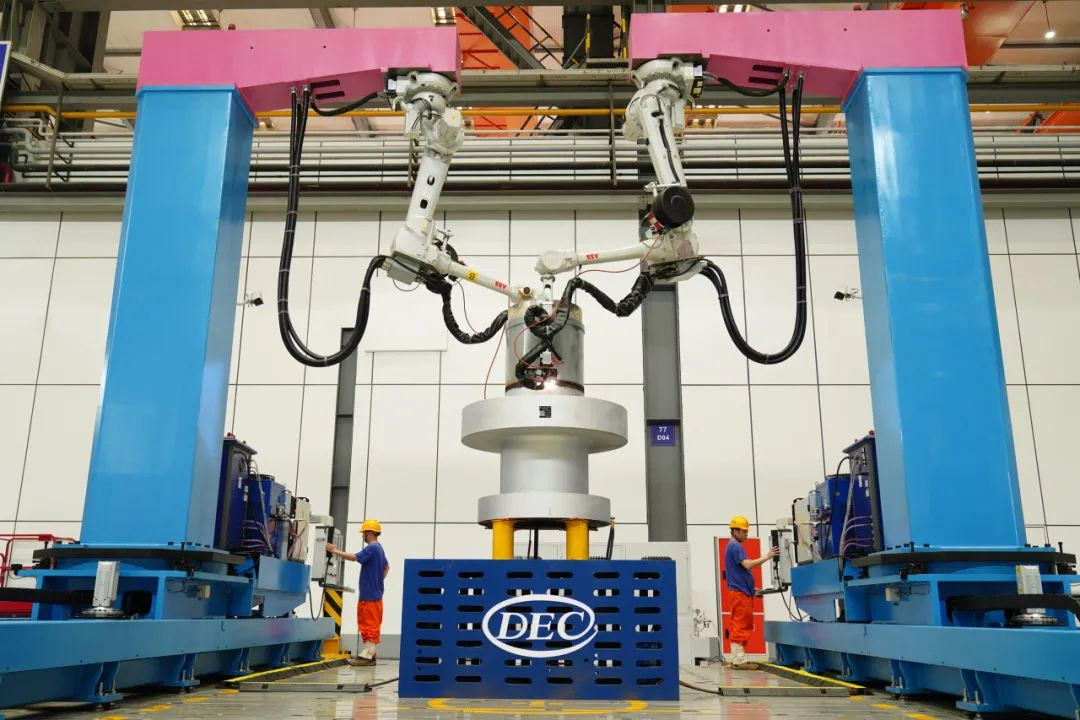 建设以MES为核心的生产管理系统,实现计划排产、制造执行、质量追溯的闭环管理。通过数字化系统与自动化产线深度融合,建成国内首个叶片加工无人车间及首条黑灯产线,人均效率提升650%,设备利用率达到90%。建成国内首个绿色高效焊接数字化车间,首创行业三零(零缺陷、零排放、零变形)焊接新模式,实现窄间隙智能焊接、多机器人协同焊接、焊缝AI检测、5G+焊接数采等关键技术在汽轮机产品上的应用,人均效率提升300%,直接碳减排380吨/年。建成行业首个总装数字化车间,开启汽轮机数字总装替代传统实物总装的新纪元,突破大空间全尺寸测量难、实物装配周期长等行业技术壁垒,实现总装周期缩短40%、测量准确率100%。建成全流程制造隔板数字化车间,实现隔板数字交付,首次实现极限空间柔性智能焊接、复杂空间曲面构件机器人焊接磨削一体化等智能化制造,产品制造周期缩短25%,焊接合格率提升至99.5%。