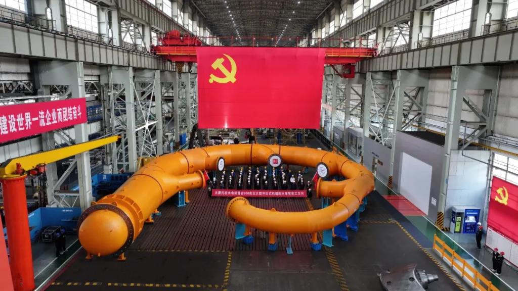 10月21日,由东方电气集团自主研制的世界首台500兆瓦冲击式水电机组配水环管率先完工交付,标志着我国高水头、大容量冲击式水电机组研制取得又一里程碑成果。东方电气集团党组成员、副总经理王军,大唐西藏公司党委书记、董事长沈鹏出席完工交付仪式。