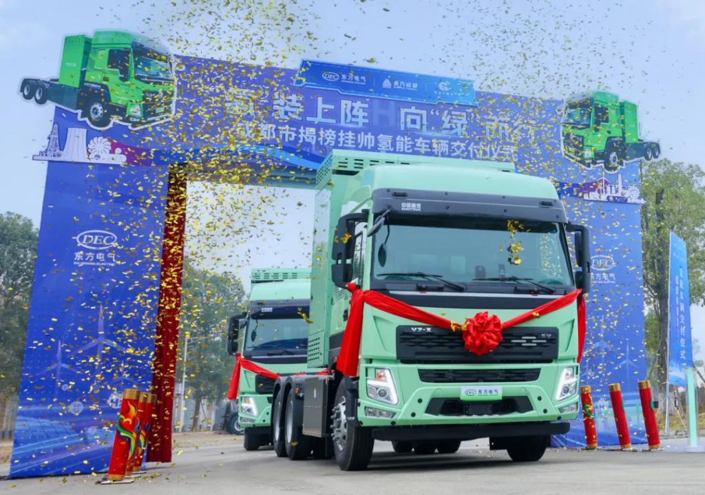 12月27日,由东方电气集团所属东方氢能与重汽成商联合研发的氢燃料电池商用车辆在成都市率先实现批量交付,展现强劲“氢”实力,此次交付将为四川省打造氢能产业发展高地再次注入蓬勃“氢”动能。