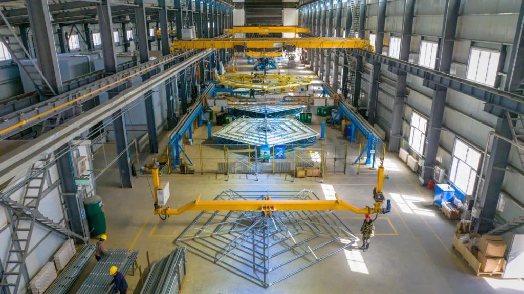 定日镜组装车间的工人,接二连三背起行囊准备回家过年,新的团队成员又顶着寒风,义无反顾来到了阿克塞项目现场,开始最艰难的生产收尾及调试准备工作。随着项目履约周期逐渐临近,现场的党员们主动联合,建立起项目临时党支部。为提高定日镜产量,临时党支部党员主动实施两班倒的生产模式,同时以支部带党员、党员带群众、群众带进度的“三带”模式为根基,开始抢周期、保节点,创造了定日镜24小时不间断产出的新纪录:定日镜组装月产量从1630套提升到2111套,单日定日镜组装数量更是创造了98套/天的历史新高,远超生产车间产线设计值,不断刷新着东方电气光热项目定日镜产量的纪录。
