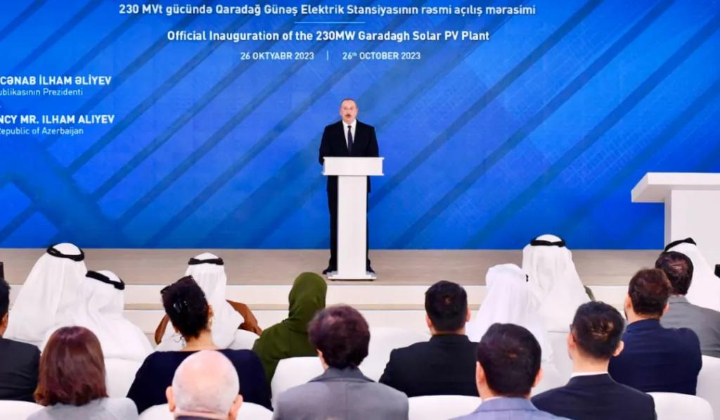 几个月后,戈布斯坦光伏电站举行并网投运仪式,阿塞拜疆总统阿利耶夫出席仪式:“去年我们参加了该座光伏发电厂的奠基仪式。今天,我们非常自豪地看到,在较短的时间内,戈布斯坦的这片空旷区域成为绿色能源的来源,这是一项了不起的成就。”