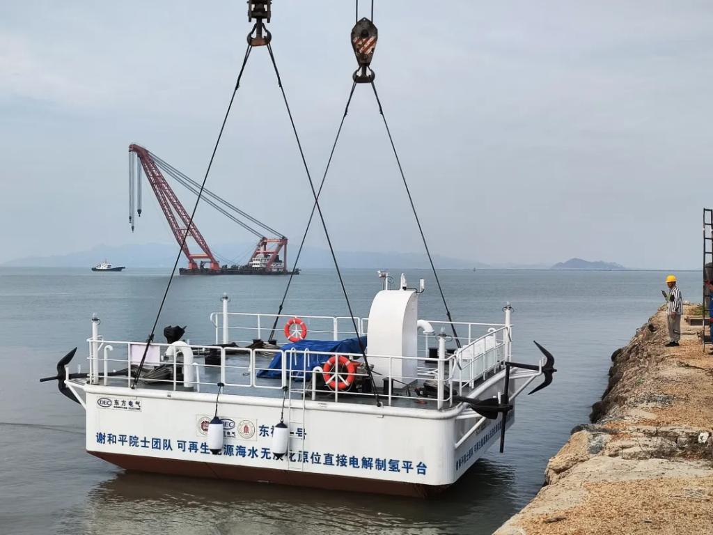 在能源转型的浪潮中,东方电气时刻关注着氢能这一未来能源的新领域。当得知谢和平院士团队正致力于全球首创的海水无淡化原位直接电解制氢技术时,东方电气集团所属东方研究院决定与谢和平院士团队展开深度校企合作,共同开启氢能领域的新篇章。面对这一场跨越未知的科技冒险,东方研究院派出精英技术团队与谢和平院士团队汇聚一堂,就技术路线的选择、研发进度的安排、资金投入的规划等议题展开了充分讨论。东方研究院团队深知,这条路上充满了荆棘与坎坷,但正是这份对探索能源转型的渴望与勇气,让他们义无反顾地踏上了征程。经过无数次交流与碰撞,2022年12月,东方研究院与谢和平院士团队达成合作,携手推进海水无淡化原位直接电解制氢原创技术落地,由东福研究院具体负责这一技术的产业化应用。