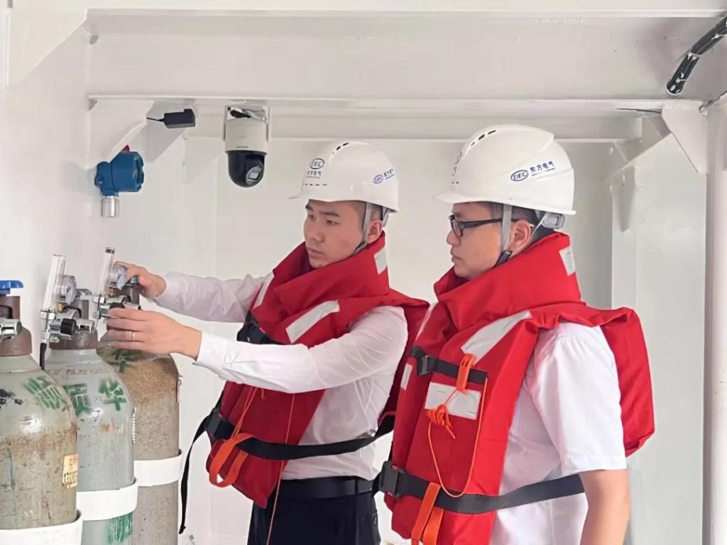 试验中,团队成员巡检“东福一号”各项设备