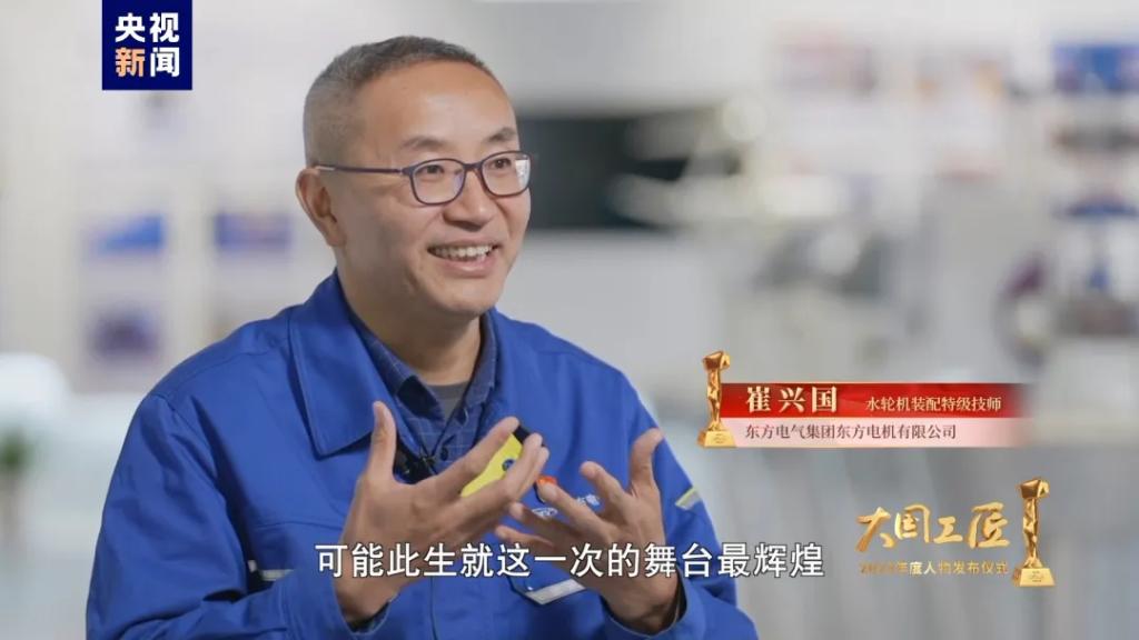 3月1日,由中华全国总工会和中央广播电视总台联合举办的2023年“大国工匠年度人物”发布活动揭晓评选结果,从50位入围人选中评选出10位“大国工匠年度人物”。东方电气集团东方电机有限公司水轮机装配特级技师、高级主任操作师崔兴国荣获2023年“大国工匠年度人物”。