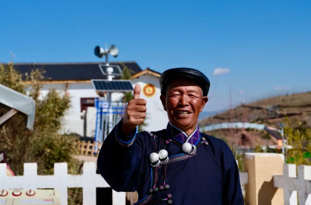 “村子里现在的产业多了,打零工的机会也多了。我爱人在蓝莓园区务工,我是村光伏电站管理员,每个月可以从光伏收益中获得1500元的工资。在家门口就能挣到钱,生活好咯!”吉地尔子笑容满满。