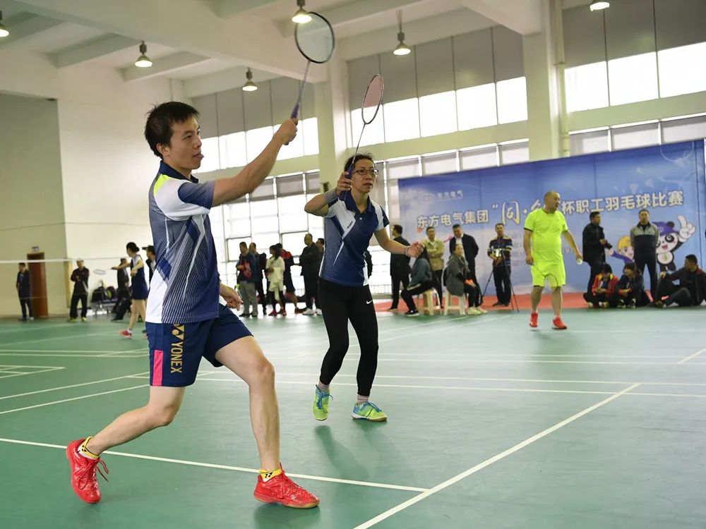 比赛中各参赛队充分发挥拼搏精神,灵活运用战术,运动健儿将高远球、扣杀、劈杀、吊球等各路球技表现得淋漓尽致,现场气氛紧张激烈,活力四射,充分展示了东方电气人的精神风貌。