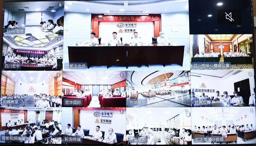 本次会议以现场与视频相结合方式召开。东方电气集团相关单位主要负责人,东方宏华新一届领导班子全体成员及部门主要负责人,东方宏华二级单位领导班子成员、总工程师、中层领导人员和职工代表在主会场和视频分会场参会。