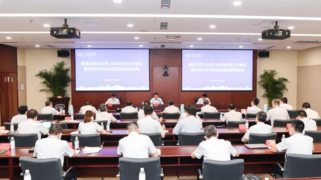 本网讯 7月29日,东方电气集团召开2022年上半年改革工作会暨改革三年行动高质量收官推进会,深入贯彻落实国资委关于国企改革三年行动高质量收官决策部署,总结上半年改革工作推进情况,对集团改革三年行动高质量收官进行专题部署。集团公司党组书记、董事长俞培根出席会议并讲话,党组成员、副总经理张继烈主持会议。