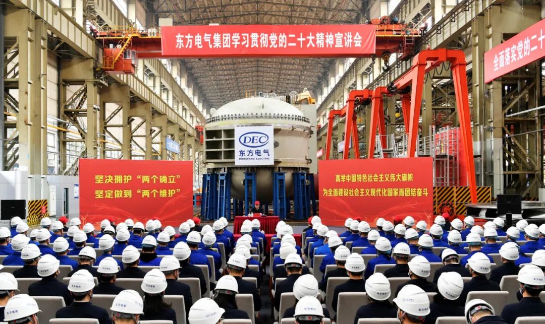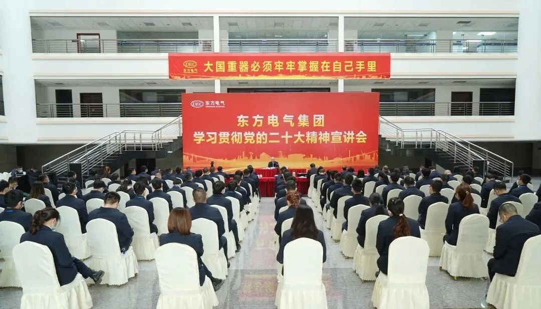 广大党员干部职工表示,聆听宣讲备受鼓舞、倍感振奋、倍增干劲。在新征程上,要更加紧密团结在以习近平同志为核心的党中央周围,把党的二十大精神全面落实到工作各方面全过程,踔厉奋发、勇毅前行、埋头苦干、锐意进取,以更强烈的使命担当、更坚定的思想自觉和行动自觉,为推动东方电气集团高质量发展、加快建设世界一流企业贡献力量。