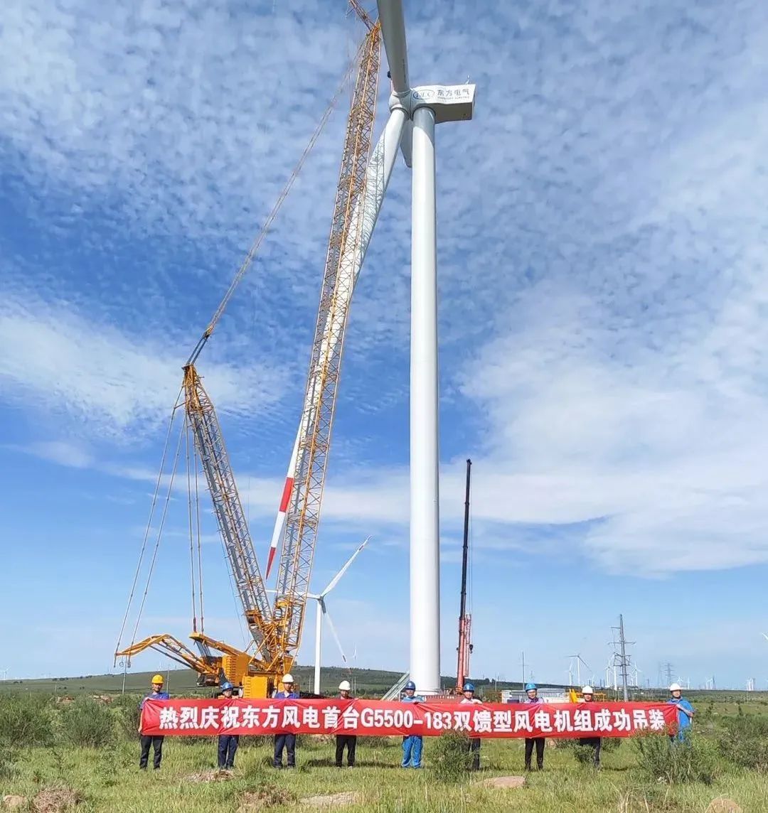 ❖近日,东方风电自主研制、拥有完全自主知识产权的首台G5500-183型风力发电机组顺利完成吊装,这是东方风电应对“平价上网”、“竞价上网”和分散式风电的一款旗舰产品。G5500-183型风电机组单机容量覆盖4.65MW/5MW/5.5MW,风轮直径覆盖172m/183/195m,机组采用模块化设计,结构简单,易于维护,延续了东方风电成熟的控制策略、电气系统、偏航系统、塔筒、机架等结构和技术,具备良好的并网能力与发电性能。
