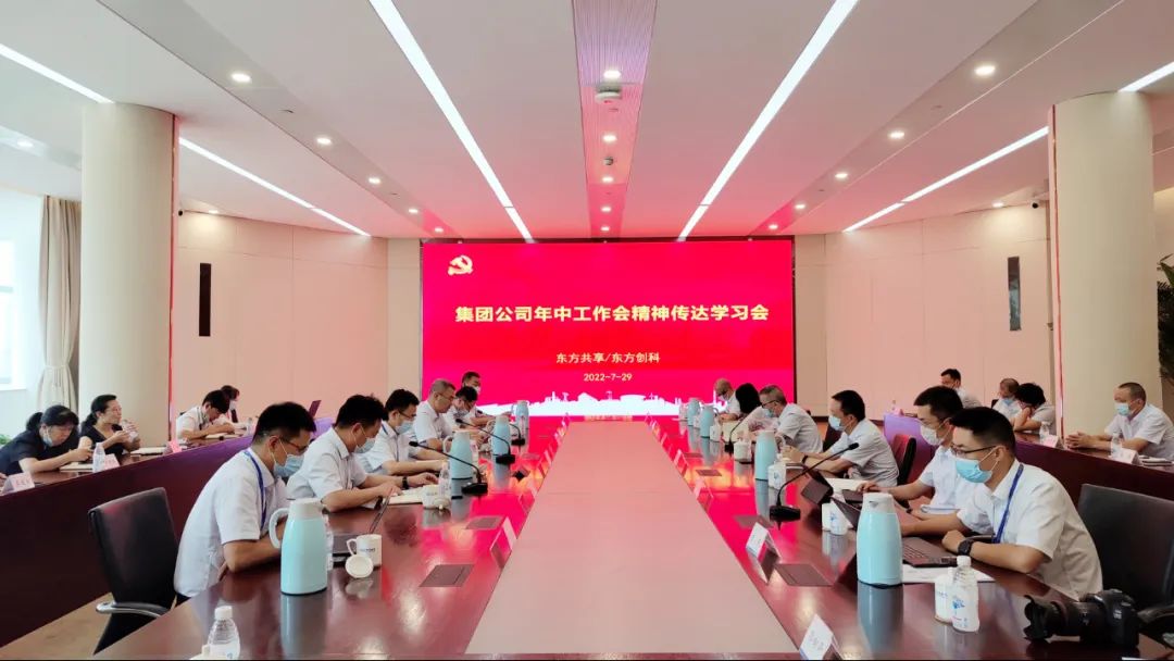 7月29日,东方研究院召开专题会,传达学习集团年中工作会议精神并部署落实措施。下半年,东方研究院将围绕迎接宣传贯彻党的二十大精神这条主线,进一步深化改革,激发创新创造活力,加快成果转化步伐,切实加强风险防控,推进党建“夯基提标”,全面加强党的建设,为推进实现高水平科技自立自强努力奋斗。东方研究院各党支部分别通过各种方式深入学习贯彻会议精神,并组织党员参观了集团公司主题活动成果展。