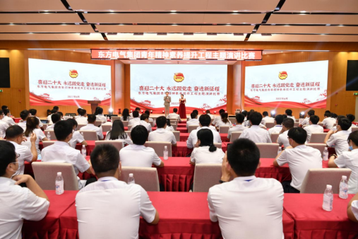 为喜迎党的二十大,推进集团公司青年精神素养提升工程走深走实,引领广大团员青年听党话、跟党走,进一步提升团员青年的历史责任感和使命感,激发青春心向党、建功新时代的昂扬斗志,6月24日下午,东方电气集团青年精神素养提升工程主题演讲比赛在四川德阳成功举办。