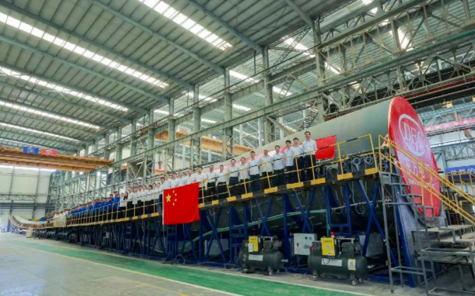 以“敢上九天揽月,敢下五洋捉鳖”的拼劲,走出一条创新驱动发展之路,实现“弯道超车”新跨越。东方电气集团准确把握行业“脉搏”,在2018年启动“跨代开发”计划,充分利用在发电、叶片、电控、工艺等方面的经验和技术积累,厚积薄发,在短时间内完成6大平台化机组开发,接连打造了国内陆上最大的6.25MW风电机组、亚洲海上最大的10MW、13MW风电机组,世界海拔最高的风电机组(5150米),国内首台7MW全国产化海上风电机组等二十余款新产品,带动企业规模快速增长,推动集团公司成为中国海上风电技术引领者。