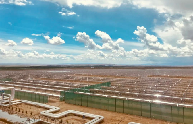 哈密50兆瓦光热发电项目是国家能源局批准的首批20个光热示范项目之一。东方电气提供核心系统与设备,能够高效利用吸热塔中的熔盐吸收太阳光热量,将约290摄氏度的熔盐加热成565摄氏度的高温熔盐,再经过热能交换产生高温高压蒸汽,推动汽轮发电机发电,并配置13小时储热系统确保机组24小时连续稳定运行,对保证电力系统安全、稳定、高效运行具有重要作用。