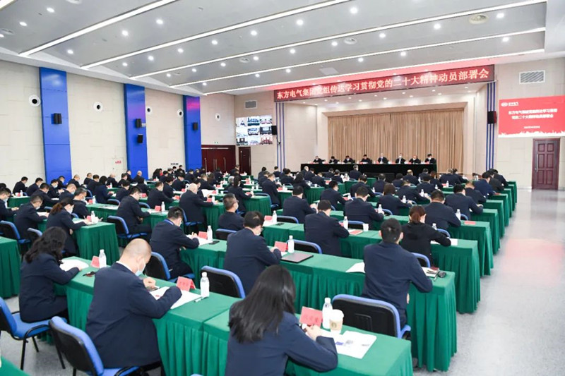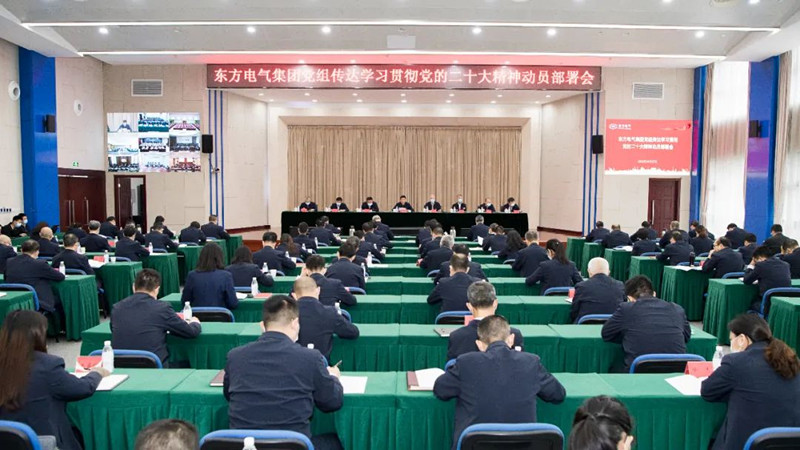 为进一步传达学习党的二十大精神,贯彻落实国务院国资委党委部署要求,对全集团齐心协力抓好抓实抓细党的二十大精神的学习宣传贯彻工作进行动员部署,不断推动党的二十大精神在东方电气集团进一步落地生根、开花结果,10月27日下午,东方电气集团党组传达学习贯彻党的二十大精神动员部署会召开。党的二十大代表,集团公司党组书记、董事长俞培根出席会议并作动员讲话。集团公司领导徐鹏、宋致远、刘智全、张继烈、袁明刚、张彦军、李忠军出席会议。