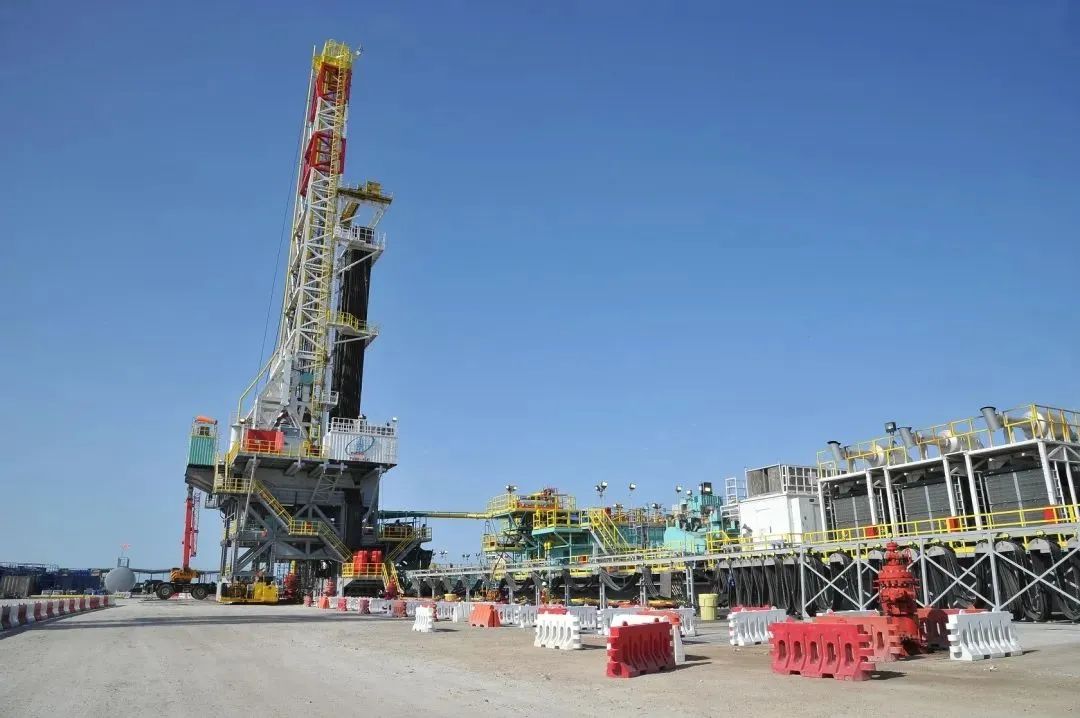 ▲东方宏华3000HP人工岛快速移运丛式井钻机