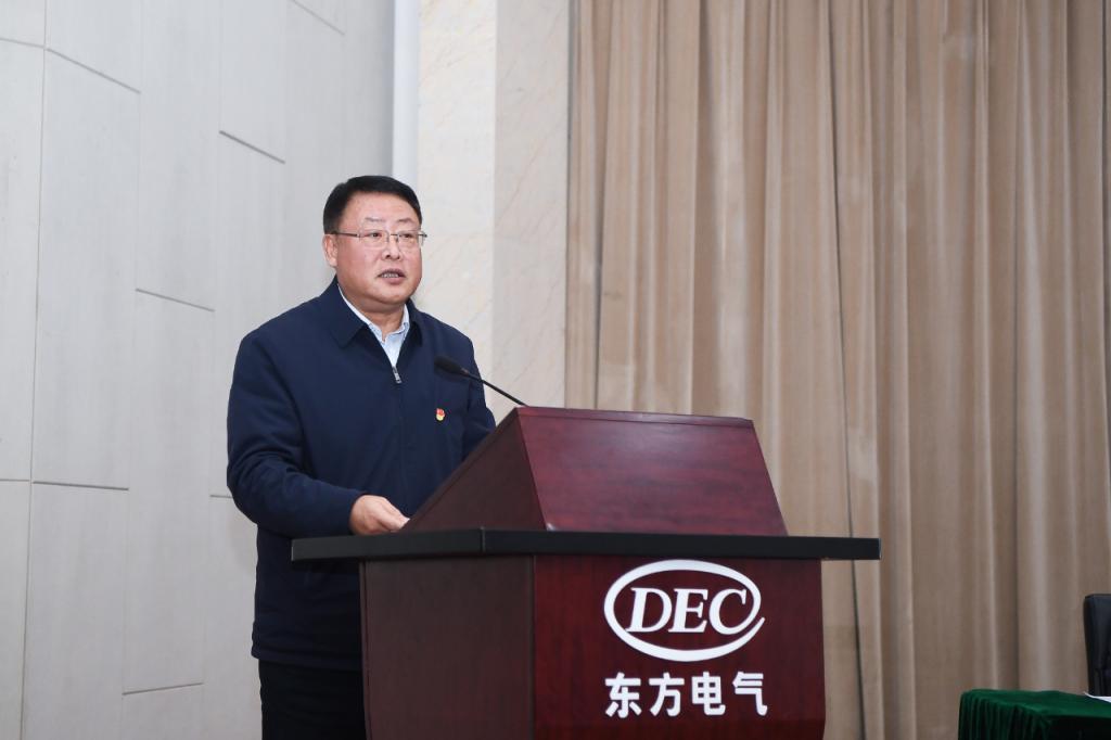 俞培根强调,党的二十大把“团结奋斗”写进大会的主题。习近平总书记参加党的二十大广西代表团讨论时强调,全党全国各族人民要在党的旗帜下团结成“一块坚硬的钢铁”,心往一处想、劲往一处使,推动中华民族伟大复兴号巨轮乘风破浪、扬帆远航。回首集团公司60多年发展历程,团结奋斗是“东汽精神”的应有之义,更是东方电气人宝贵的精神品质,为企业攻克发展道路上一重又一重难关,创造一次又一次历史最好提供了坚强保证。东方电气集团要在“十四五”后三年集团公司发展提质、加速、转型的重要战略机遇期跳起摸高,各级党组织和全体党员干部职工务必要发扬斗争精神,与腐败消极作斗争,与前进困难作斗争,与重大风险作斗争,敢想敢干敢闯敢拼,拿出钢铁般的志气骨气底气踔厉奋发、勇毅前行。