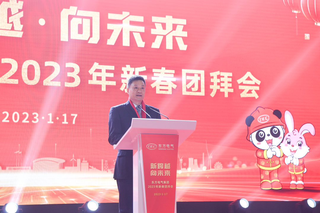 集团公司党组书记、董事长俞培根作了热情洋溢的新春致辞,向奋战在海内外各条战线的广大干部职工致以新春的祝福,向为东方电气改革发展作出贡献的离退休干部职工及家属致以诚挚的问候,向关心支持东方电气事业发展的各级领导、各界朋友、广大用户致以衷心的感谢。俞培根指出,2022年是不平凡的一年,集团公司生产经营站上历史新台阶,高质量发展迈上新台阶。过去三年,集团公司营业收入和利润总额年均增长率均超过了20%,创建世界一流企业的发展基础进一步夯实。惟其艰难、更显勇毅,惟其艰巨、更显荣光。东方电气集团将更加紧密地团结在以习近平同志为核心的党中央周围,坚定拥护“两个确立”,坚决做到“两个维护”,深入学习贯彻党的二十大精神,重创新、提质效、促转型,加快创建世界一流企业,努力创造无愧于党、无愧于时代的新业绩!
