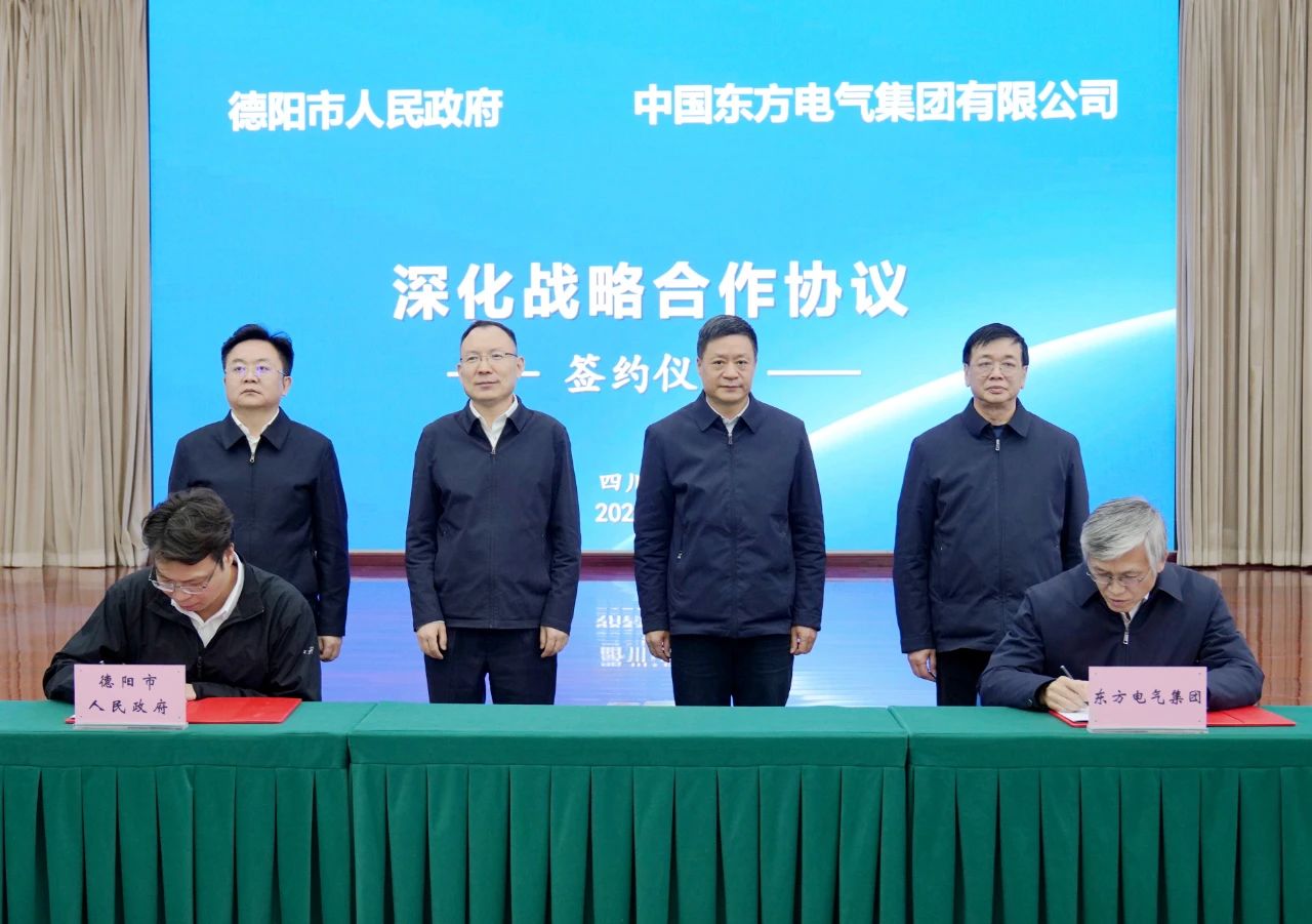 俞培根、李文清等领导共同见证了签约仪式。签约仪式分两轮进行,第一轮中国东方电气集团有限公司与德阳市人民政府签署《深化战略合作协议》;第二轮东方电气风电股份有限公司与德阳发展控股集团有限公司签署《战略合作协议》。根据协议内容,双方将发挥各自资源优势,共同推动东方电气集团在德阳布局和发展更多产业,助力德阳加快建设世界级清洁能源装备制造基地。