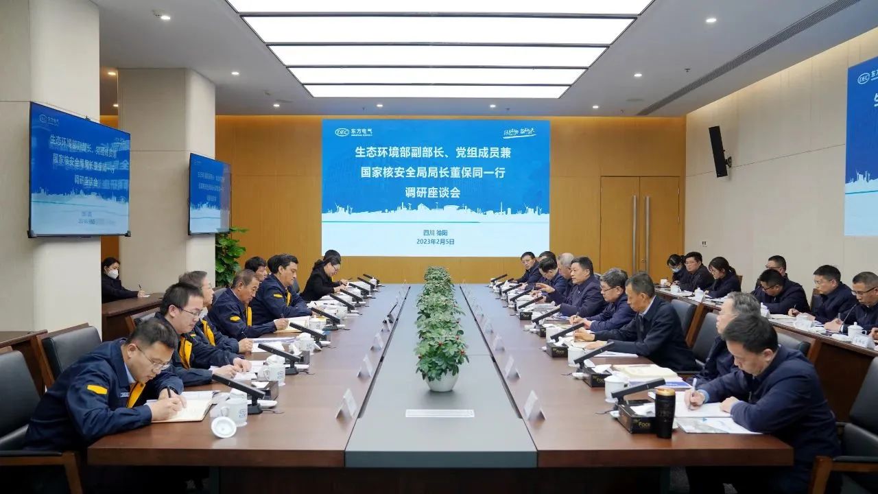 生态环境部核设施安全监管司、华北核与辐射安全监督站、西南核与辐射安全监督站、四川省生态环境厅负责人,东方电气集团及涉核企业主要领导参加调研座谈。