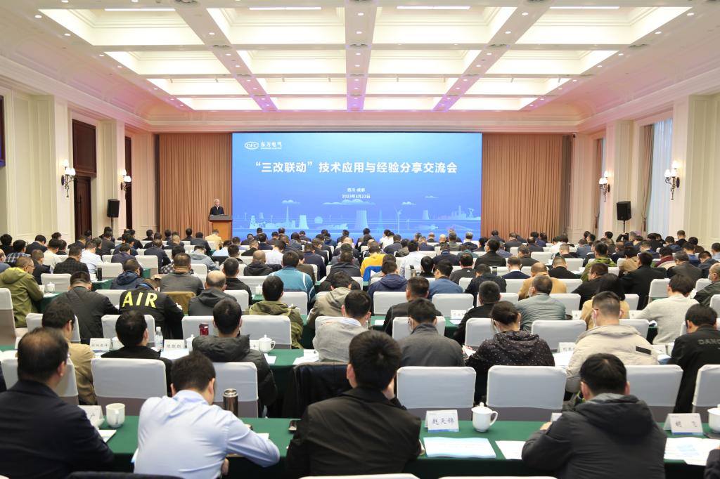 本网讯 3月22日,东方电气集团“三改联动”技术应用与经验分享交流会在蓉成功举办。国家能源局、四川能源局、电规总院、各电力集团及区域公司、电厂代表等合计120家单位,300余人参加了会议,共谋产业机遇,共话产业发展。