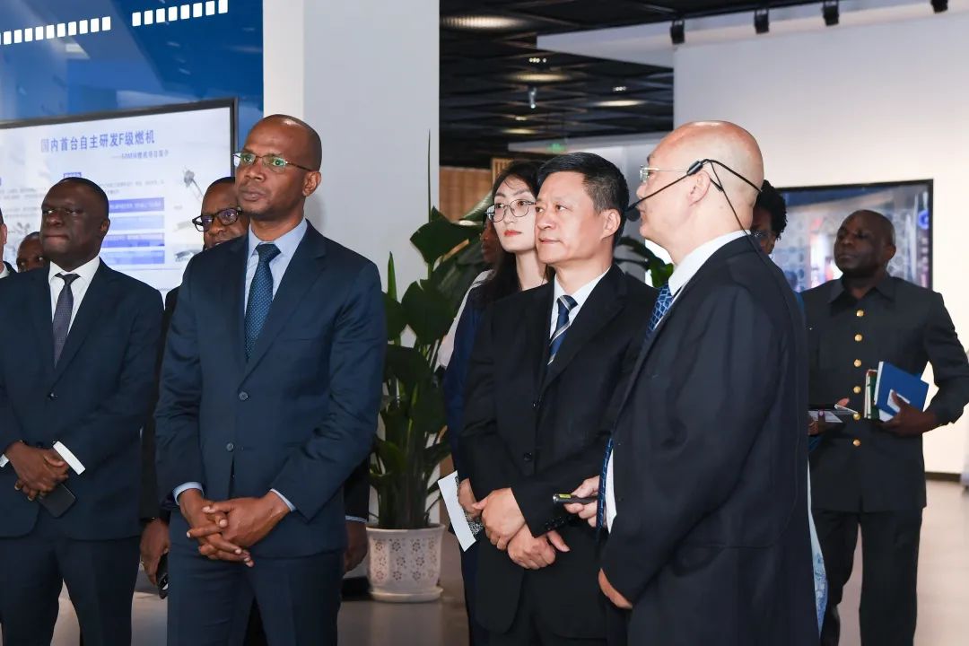 在俞培根的陪同下,马坎巴一行参观了东方电气科技展示厅,重点了解了东方电气科技创新、产业发展、国际业务等方面情况。