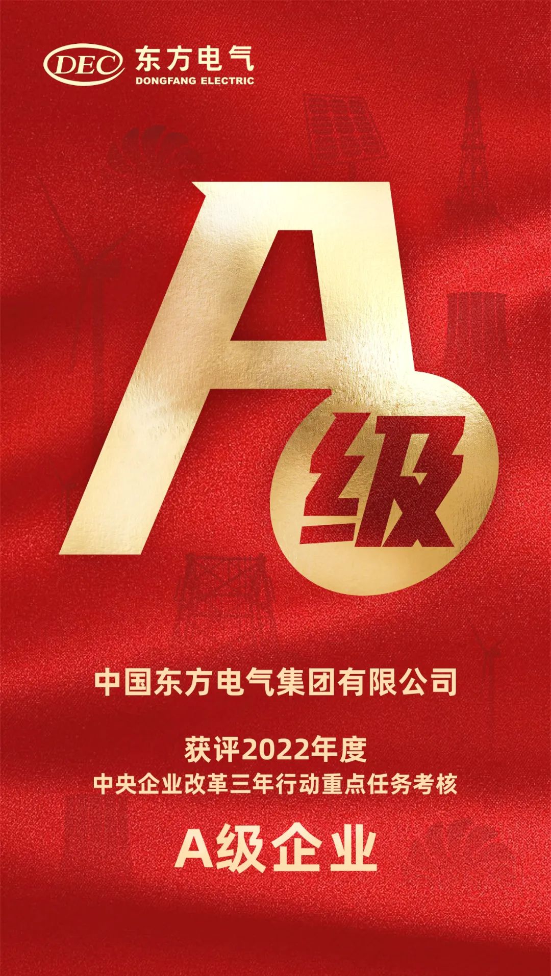 本网讯 6月26日,国务院国资委发布《2022年度中央企业改革三年行动重点任务考核A级企业名单》,中国东方电气集团有限公司获评2022年度中央企业改革三年行动重点任务考核A级企业,连续两年获评A级殊荣!