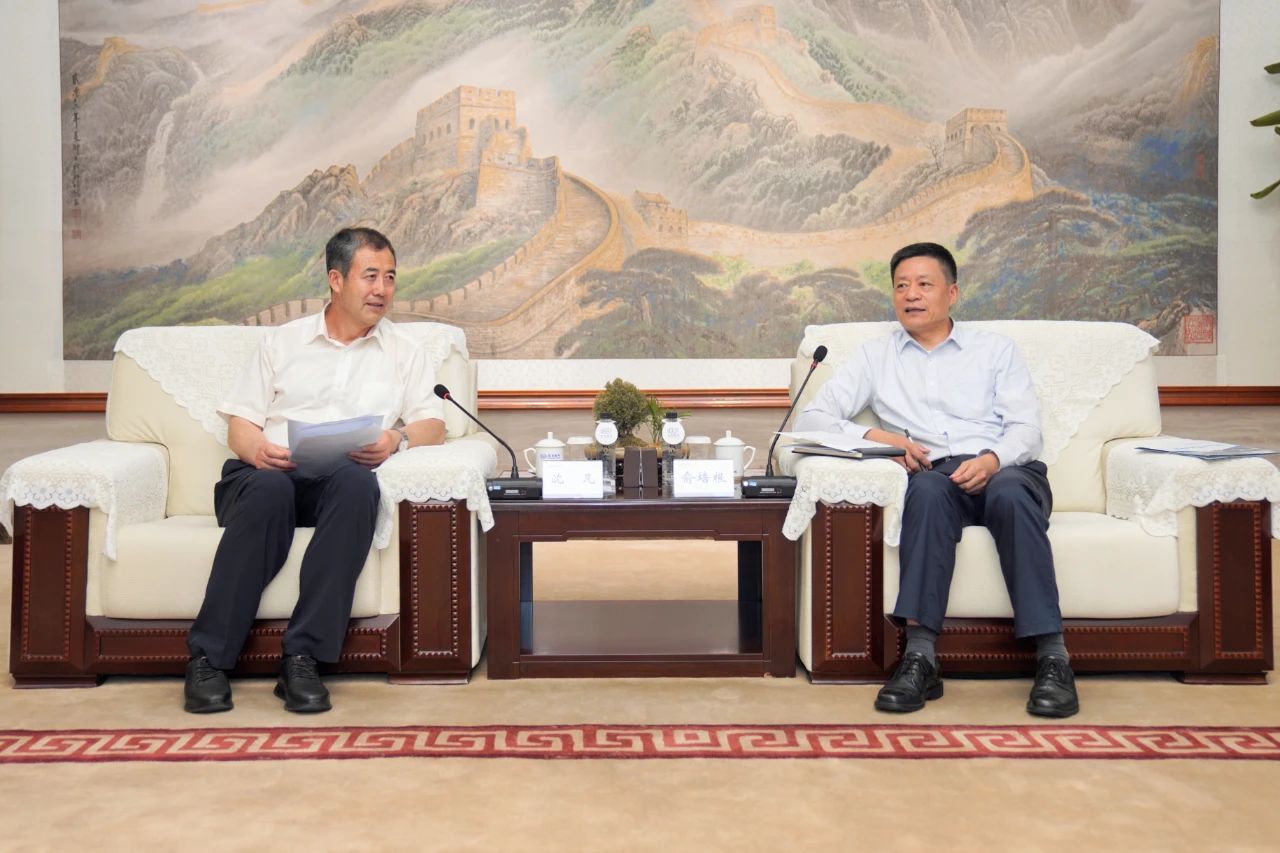 本网讯 6月30日,宁夏回族自治区人大常委会副主任沈凡访问东方电气集团,受到集团公司党组书记、董事长俞培根的热情接待,双方就进一步加强央地合作、共同推进高质量发展进行友好座谈交流。东方电气集团党组成员、总会计师刘智全参加会谈。