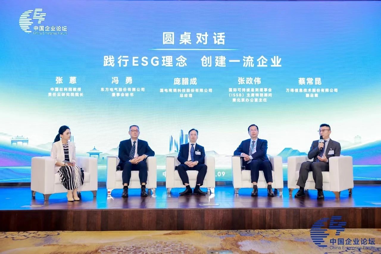 东方电气股份有限公司董事会秘书冯勇作为10家“央企ESG·先锋100指数”入选企业代表领取证书,并在第六届中国企业论坛平行论坛“践行ESG理念,创建一流企业——中央企业ESG论坛”中作圆桌分享。