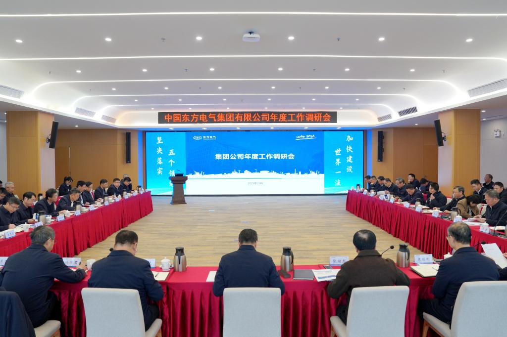 本网讯 为持续深入学习贯彻习近平新时代中国特色社会主义思想,牢牢把握新时代新征程国资央企新使命新定位,坚持“领先战略”,盘点2023年度目标任务完成情况,推动谋划2024年度重点工作,全力确保集团公司“十四五”规划目标实现,11月22日,东方电气集团在德阳召开年度工作调研会。集团公司党组书记、董事长俞培根主持调研会,集团公司领导宋致远、张继烈、孙国君、袁明刚、张彦军、李忠军参加调研。