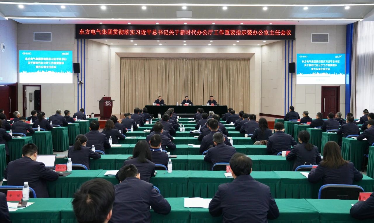 本网讯 为深入学习贯彻习近平总书记关于新时代办公厅工作的重要指示精神,落实全国党委和政府秘书长会议要求,系统总结党的十九大以来集团公司办公室系统工作,进一步提高办公室“三服务”工作能力和水平,12月15日,东方电气集团召开贯彻落实习近平总书记关于新时代办公厅工作重要指示暨办公室主任会议。集团公司党组书记、董事长俞培根,董事、党组副书记宋致远出席会议,董事会秘书、总审计师冯勇主持会议。