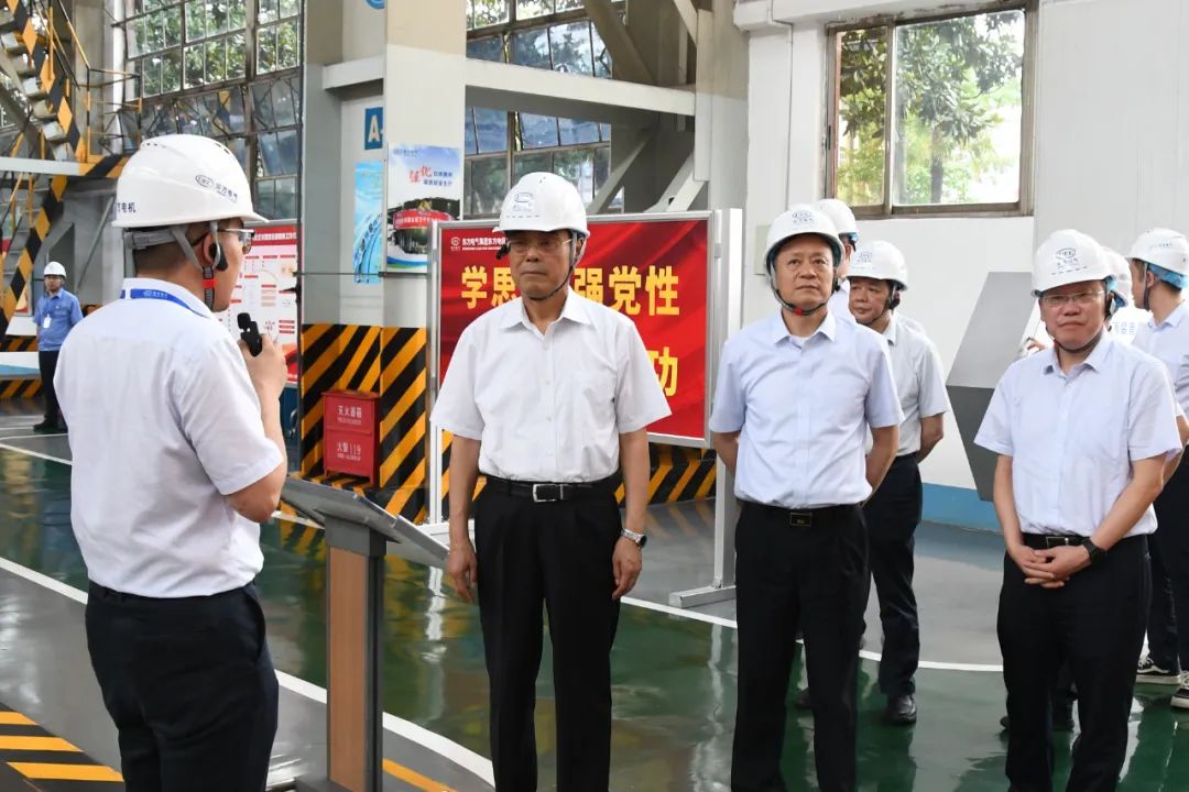 在集团公司党组书记、董事长俞培根,党组成员、副总经理张继烈陪同下,舒印彪一行深入东方电气集团子企业实地调研。