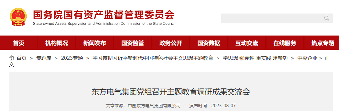 自主题教育开展以来,东方电气集团党组认真学习贯彻习近平总书记关于调查研究的重要论述,认真落实《关于在全党大兴调查研究的工作方案》要求,立足企业改革发展实际,联动谋划选实题目,统筹协同做实行动,系统分析找实问题,同题共答干实成效,做到上下联动,以实为先,先后围绕8个调研主题开展实地调研41次,发现问题44个,制定针对性措施89条,切实推动调查研究高标准开展、调研成果高效率转化,形成了一批高质量调研成果。