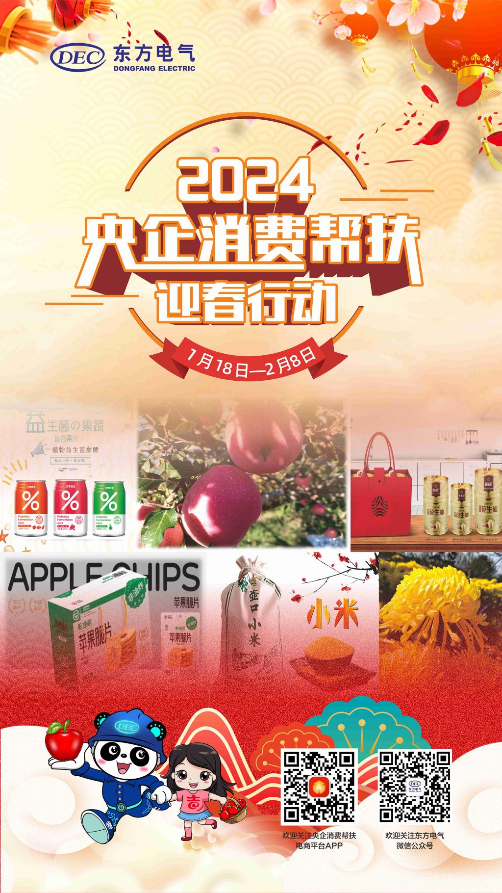 为深入学习贯彻习近平总书记关于“三农”工作重要论述,坚决贯彻落实党中央、国务院决策部署和国务院国资委工作安排,全力支持脱贫地区巩固拓展脱贫攻坚成果、促进脱贫群众就业增收,东方电气集团积极参与开展2024年“央企消费帮扶迎春行动”,欢迎选购!