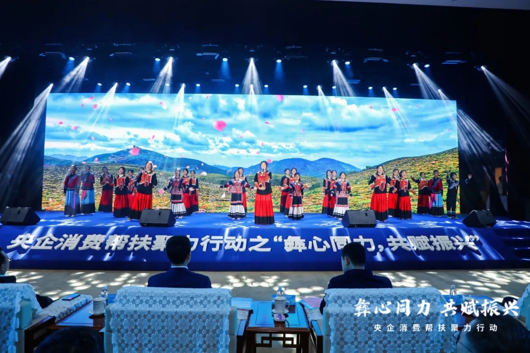 与会领导共同为央企消费帮扶聚力行动之“彝心同力 共赋振兴”购物节按下启动键。