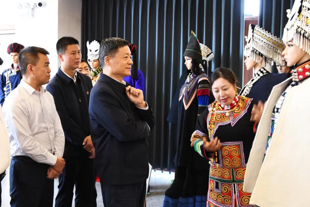 在沐恩邸社区,俞培根深入调研彝族服饰博物馆建设及服饰产业发展情况,详细了解彝族服饰文化和历史文化。俞培根表示,昭觉县素有“彝族服饰之乡”之称,彝族文化浓郁、特色鲜明,要建好用好彝族服饰博物馆,推出更多具有特色的文创产品,加快发展具有特色的文旅产业,更好带动群众增收,不断满足群众对美好生活的向往。