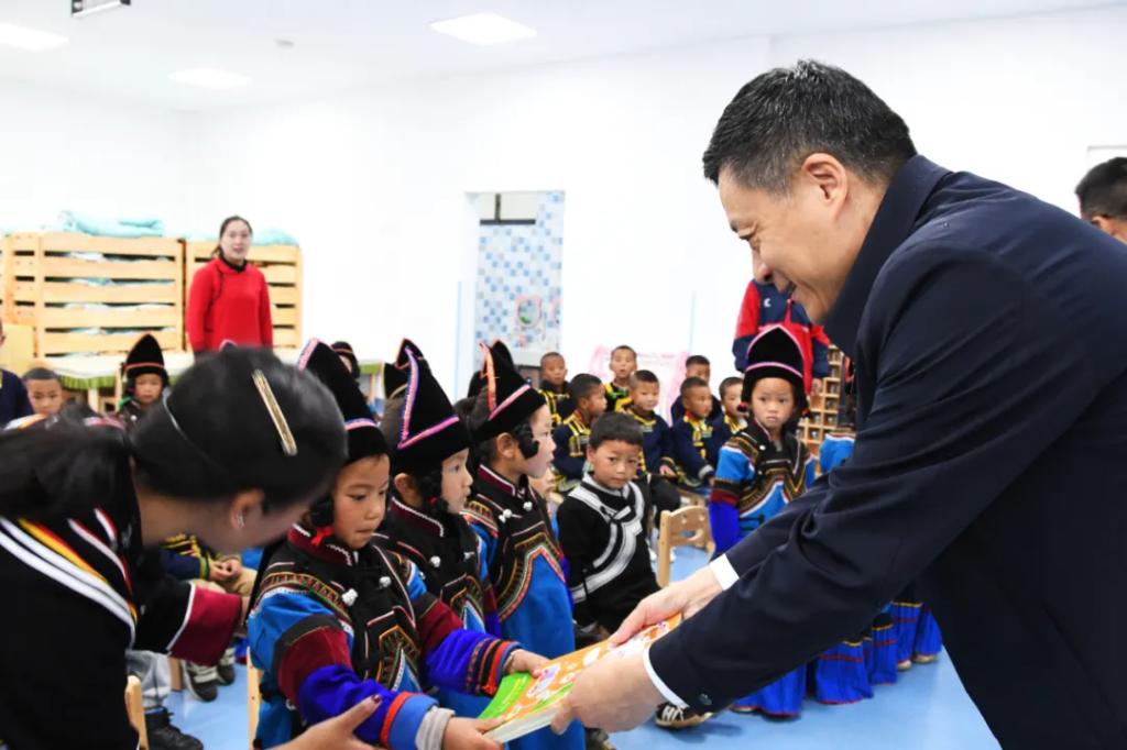 在东方电气洛且博村幼儿园,俞培根深入了解幼教设施建设情况和当地适龄儿童学前教育情况,为幼儿园小朋友赠送书籍绘本。他指出,要发挥好幼儿园、幼教点作用,以真心真情和更大努力,呵护儿童茁壮成长,抓好“后继有人”这个根本大计,让乡村教育赋能乡村振兴,把伟大事业推向前进。