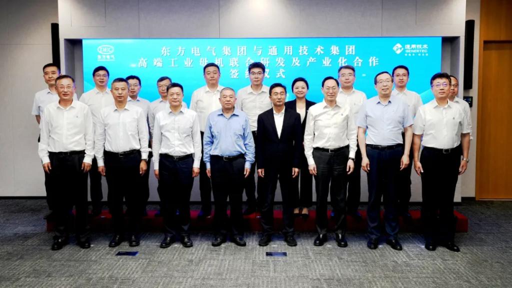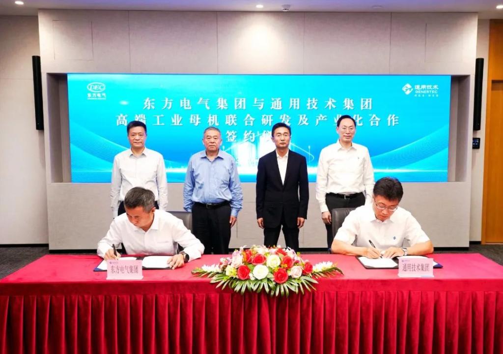 本网讯 6月7日,东方电气集团与通用技术集团在北京签署能源领域高端工业母机联合研发及产业化合作协议。东方电气集团党组书记、董事长俞培根与通用技术集团党组书记、董事长于旭波就进一步深化合作进行座谈交流,国务院国资委秘书长庄树新、工业和信息化部一级巡视员苗长兴出席并共同见证签约仪式。