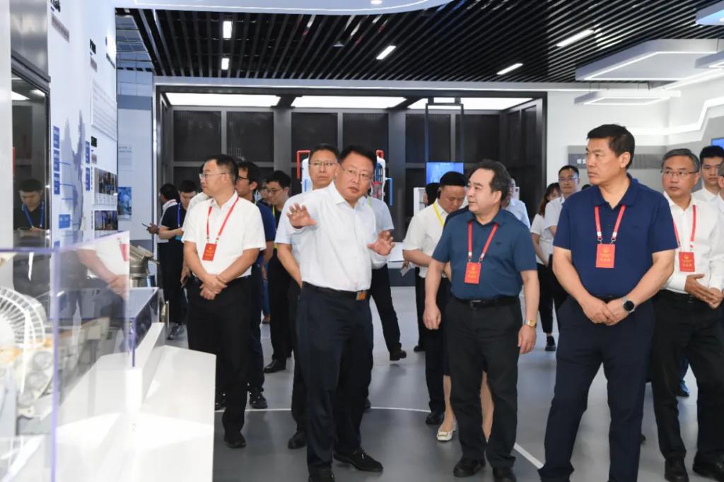 在东方电气科技展示厅,代表们详细了解了东方电气集团的经营管理、发展历程、产业布局、科技创新、装备制造等方面情况。