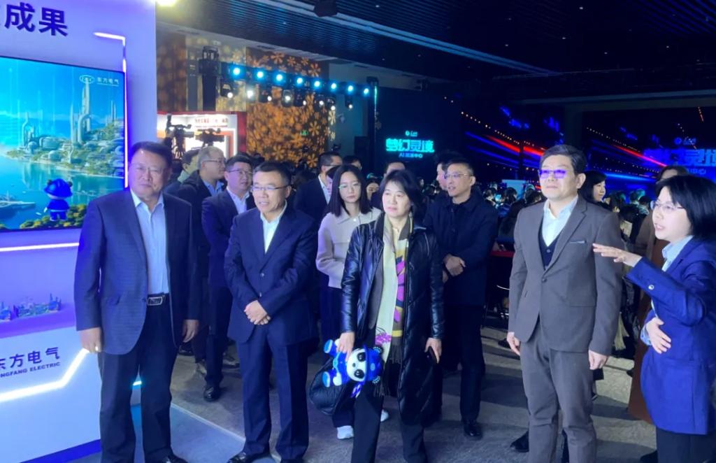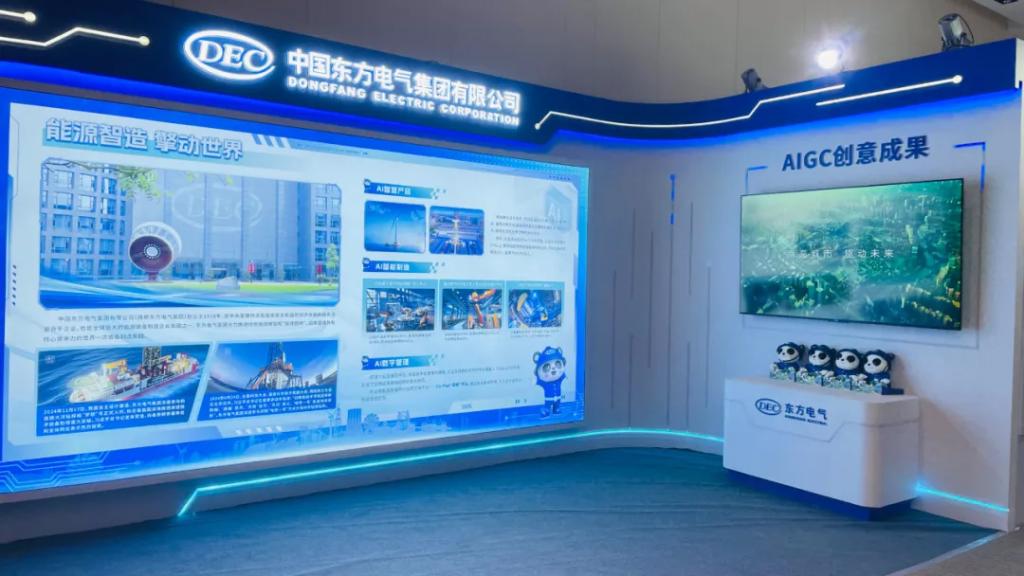 活动期间,嘉宾们还参观了首届中央企业AIGC创意传播成果展,东方电气集团打造的“能源智造 擎动世界”主题展台受到关注,集中展出了东方电气集团绿色智造、AI高端装备制造的创新形象。